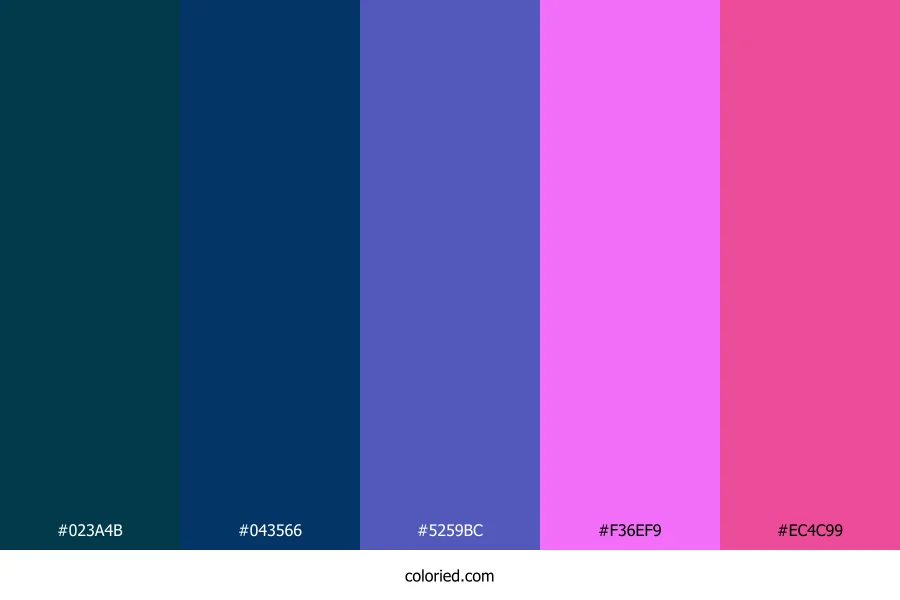 ![]() | #023A4B | 2, 58, 75 | 194, 95%, 15% | 97%, 23%, 0%, 71% | oklch(0.324 0.060 225) |