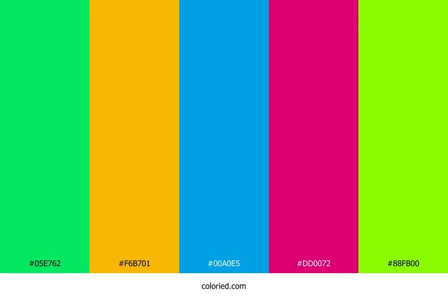 ![]() | #05E762 | 5, 231, 98 | 145, 96%, 46% | 98%, 0%, 58%, 9% | oklch(0.810 0.231 148) |