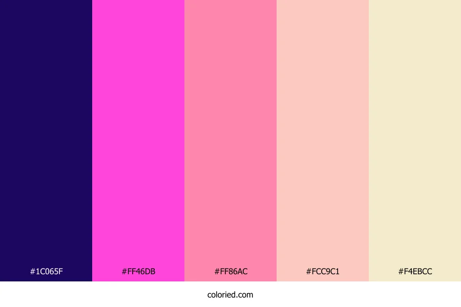 ![]() | #1C065F | 28, 6, 95 | 255, 88%, 20% | 71%, 94%, 0%, 63% | oklch(0.246 0.138 281) |