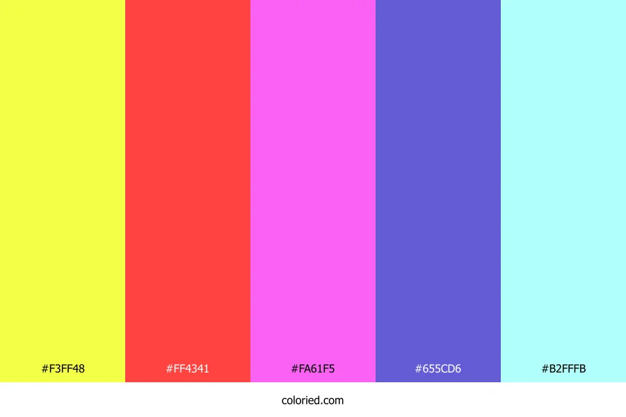 ![]() | #F3FF48 | 243, 255, 72 | 64, 100%, 64% | 5%, 0%, 72%, 0% | oklch(0.961 0.194 113) |