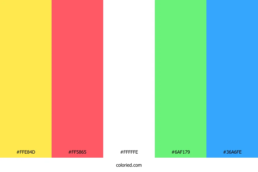 ![]() | #FFE84D | 255, 232, 77 | 52, 100%, 65% | 0%, 9%, 70%, 0% | oklch(0.924 0.168 101) |