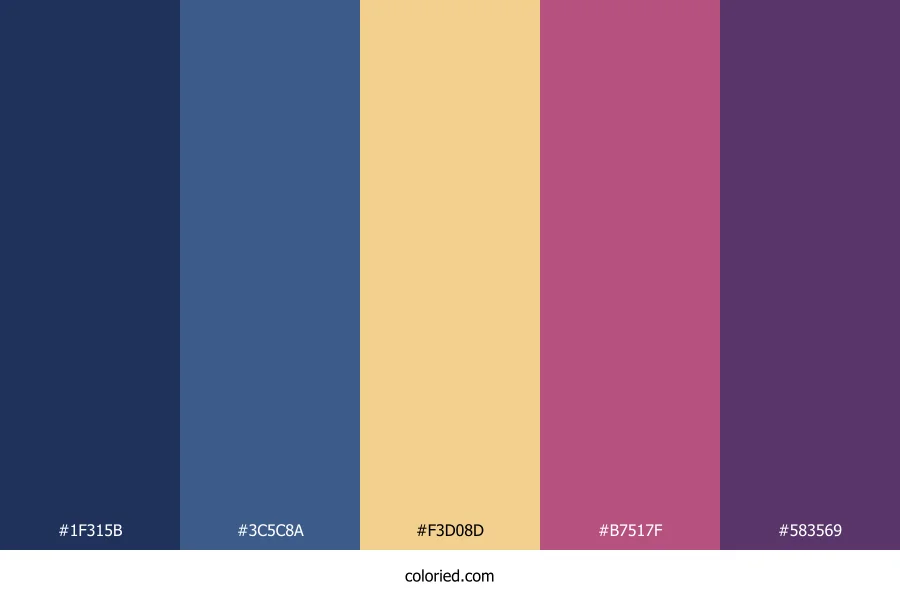 ![]() | #1F315B | 31, 49, 91 | 222, 49%, 24% | 66%, 46%, 0%, 64% | oklch(0.322 0.079 265) |