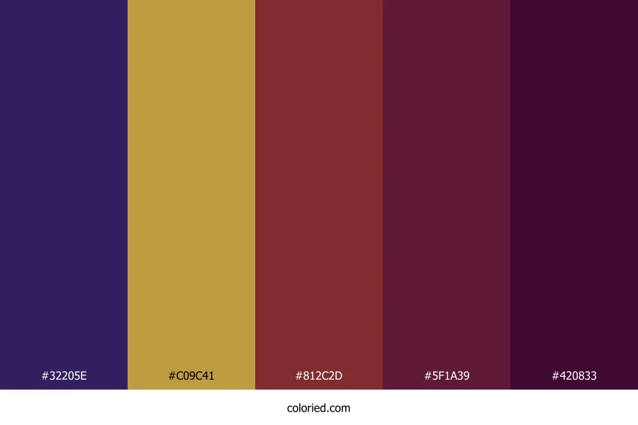 ![]() | #32205E | 50, 32, 94 | 257, 49%, 25% | 47%, 66%, 0%, 63% | oklch(0.304 0.105 292) |