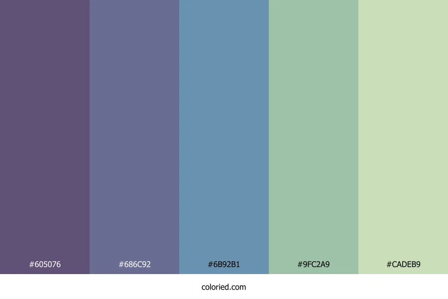 ![]() | #605076 | 96, 80, 118 | 265, 19%, 39% | 19%, 32%, 0%, 54% | oklch(0.463 0.063 303) |