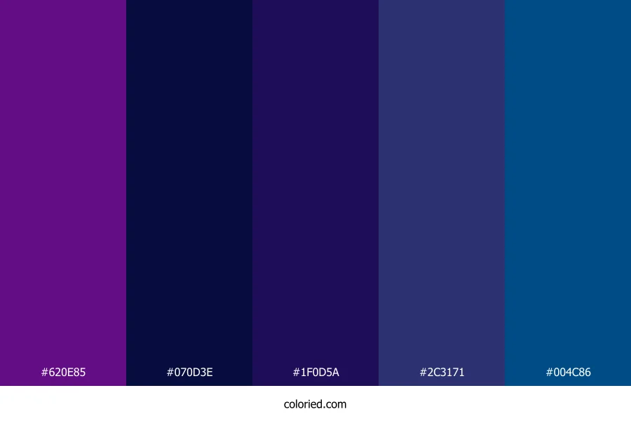 | #1F0D5A | 31, 13, 90 | 254, 75%, 20% | 66%, 86%, 0%, 65% | oklch(0.250 0.126 283) | |