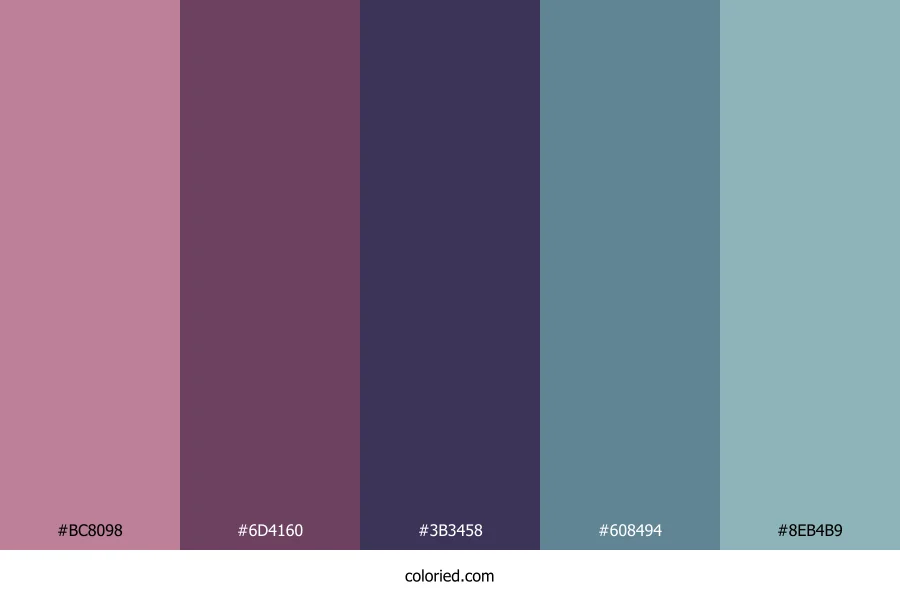 ![]() | #BC8098 | 188, 128, 152 | 336, 31%, 62% | 0%, 32%, 19%, 26% | oklch(0.668 0.080 354) |