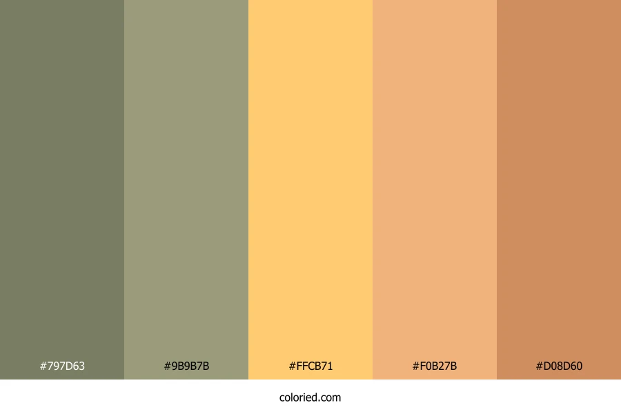 ![]() | #797D63 | 121, 125, 99 | 69, 12%, 44% | 3%, 0%, 21%, 51% | oklch(0.579 0.039 115) |
