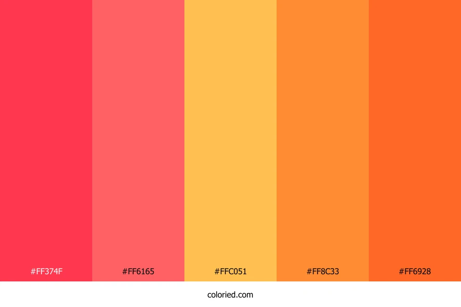 ![]() | #FF374F | 255, 55, 79 | 353, 100%, 61% | 0%, 78%, 69%, 0% | oklch(0.655 0.232 21) |