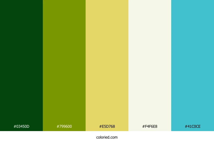![]() | #03450D | 3, 69, 13 | 129, 92%, 14% | 96%, 0%, 81%, 73% | oklch(0.340 0.106 145) |