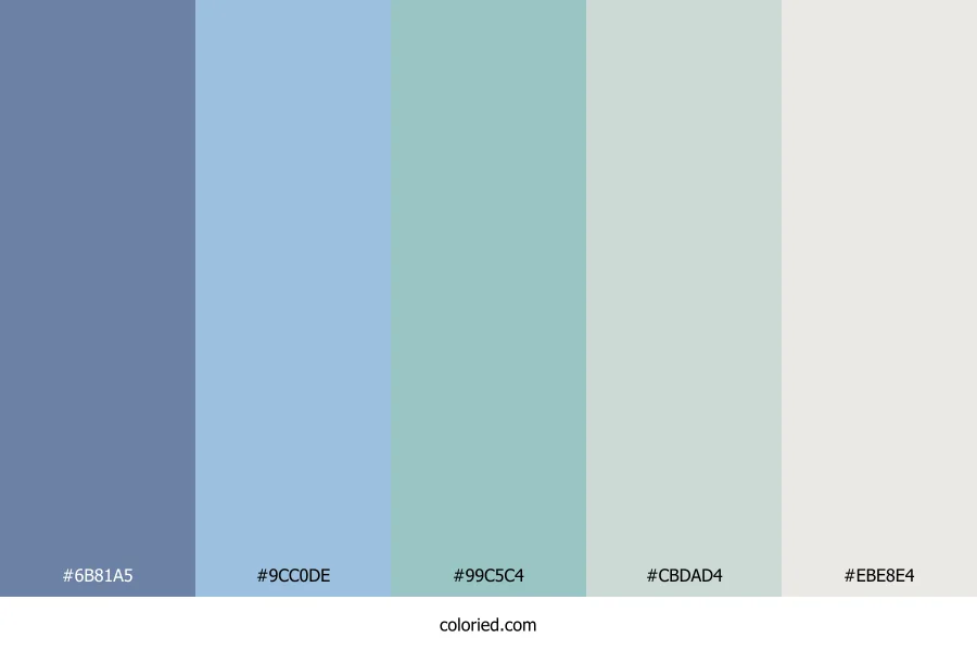 | #9CC0DE | 156, 192, 222 | 207, 50%, 74% | 30%, 14%, 0%, 13% | oklch(0.792 0.058 244) | |