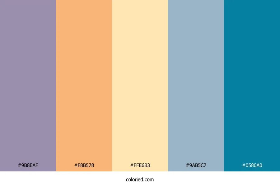 ![]() | #9B8EAF | 155, 142, 175 | 264, 17%, 62% | 11%, 19%, 0%, 31% | oklch(0.669 0.050 303) |
