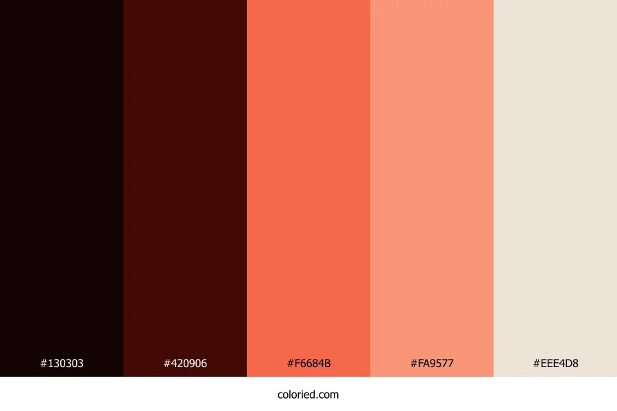 | #420906 | 66, 9, 6 | 3, 83%, 14% | 0%, 86%, 91%, 74% | oklch(0.249 0.087 29) | |