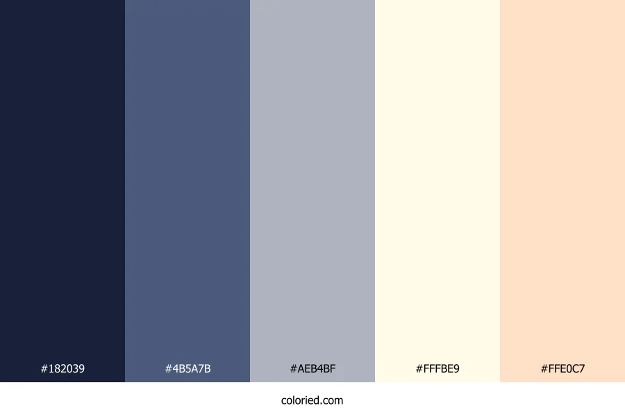 ![]() | #182039 | 24, 32, 57 | 225, 41%, 16% | 58%, 44%, 0%, 78% | oklch(0.250 0.049 269) |