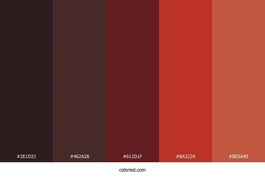 | #462A28 | 70, 42, 40 | 4, 27%, 22% | 0%, 40%, 43%, 73% | oklch(0.319 0.042 24) | |
