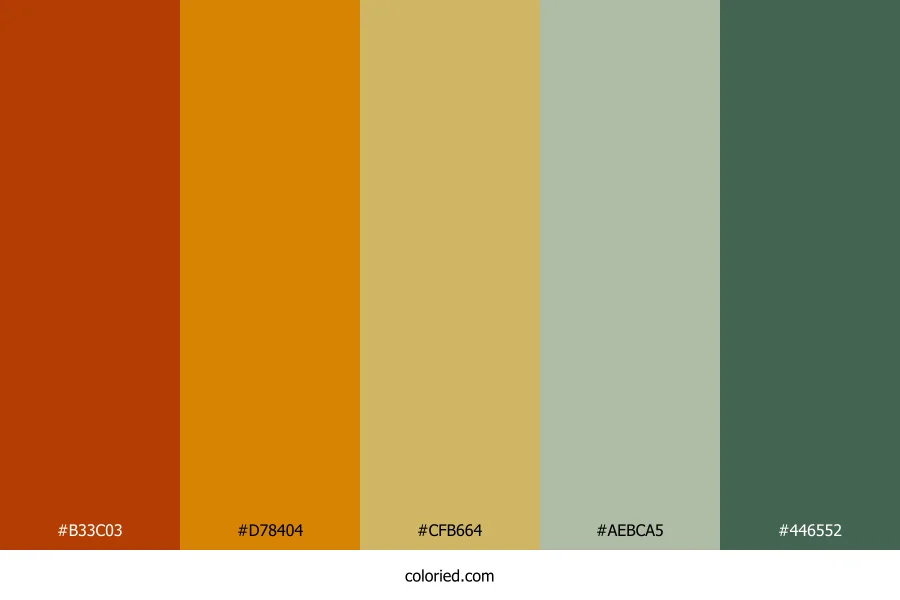 | #AEBCA5 | 174, 188, 165 | 97, 15%, 69% | 7%, 0%, 12%, 26% | oklch(0.778 0.035 133) | |