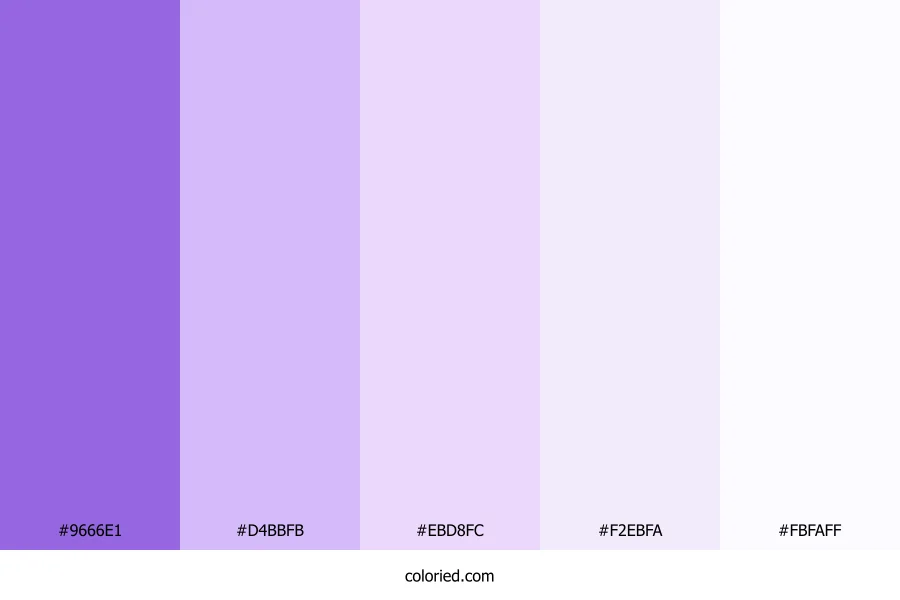 ![]() | #9666E1 | 150, 102, 225 | 263, 67%, 64% | 33%, 55%, 0%, 12% | oklch(0.617 0.181 299) |