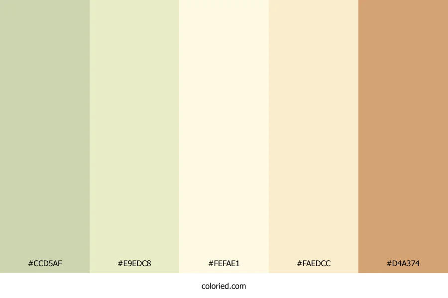 ![]() | #CCD5AF | 204, 213, 175 | 74, 31%, 76% | 4%, 0%, 18%, 16% | oklch(0.856 0.052 118) |