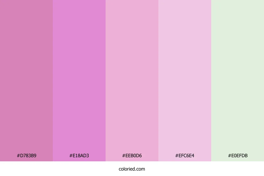| #E18AD3 | 225, 138, 211 | 310, 59%, 71% | 0%, 39%, 6%, 12% | oklch(0.747 0.140 333) | |