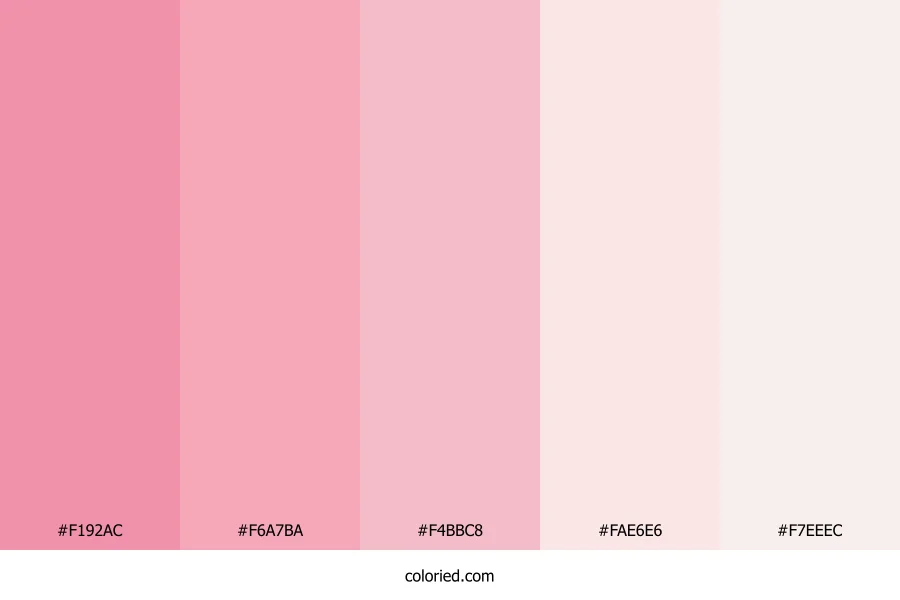 | #F4BBC8 | 244, 187, 200 | 346, 72%, 85% | 0%, 23%, 18%, 4% | oklch(0.847 0.068 3) | |