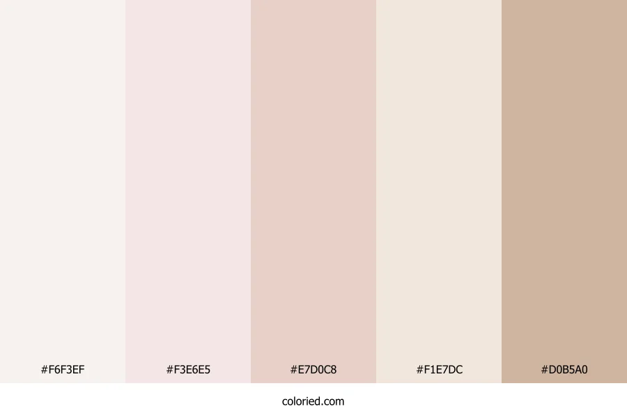 | #F1E7DC | 241, 231, 220 | 31, 43%, 90% | 0%, 4%, 9%, 5% | oklch(0.933 0.018 70) | |