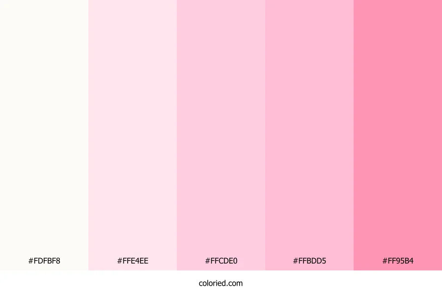| #FFE4EE | 255, 228, 238 | 338, 100%, 95% | 0%, 11%, 7%, 0% | oklch(0.944 0.032 353) | |