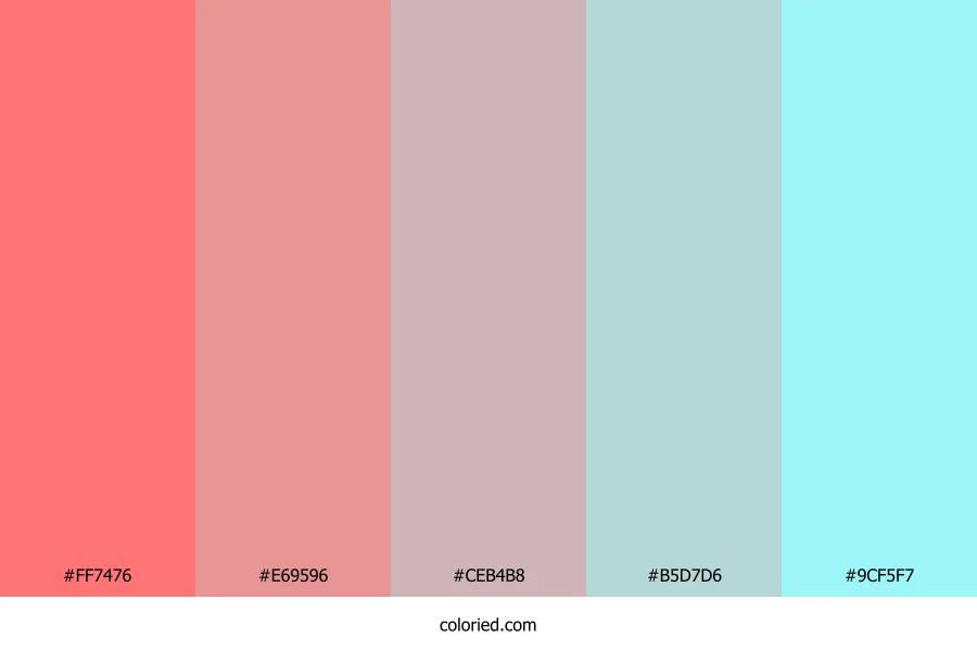 ![]() | #FF7476 | 255, 116, 118 | 359, 100%, 73% | 0%, 55%, 54%, 0% | oklch(0.726 0.170 21) |