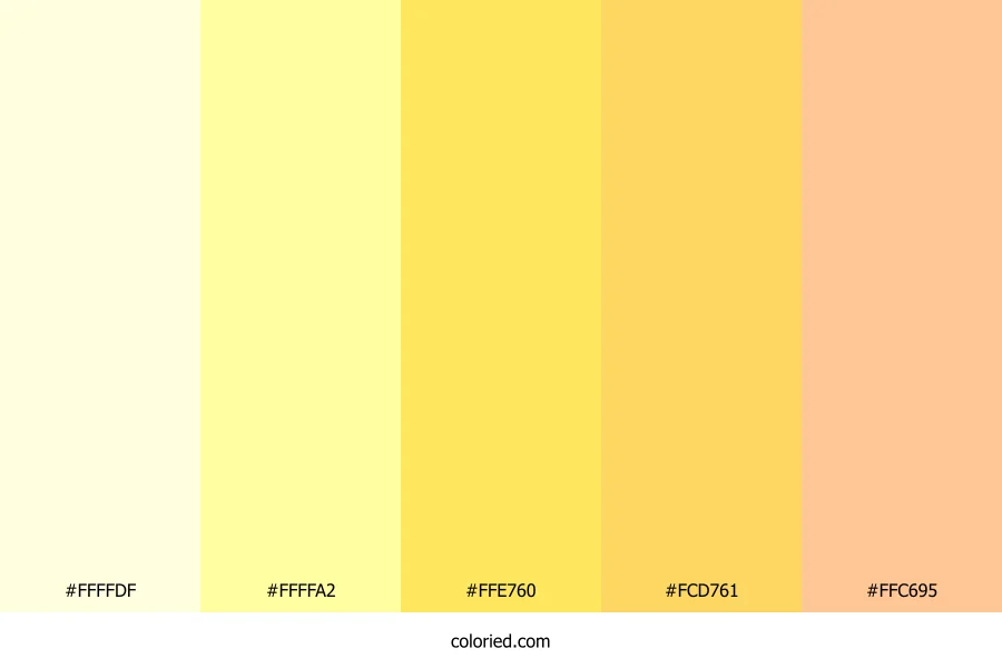 | #FFE760 | 255, 231, 96 | 51, 100%, 69% | 0%, 9%, 62%, 0% | oklch(0.923 0.154 99) | |