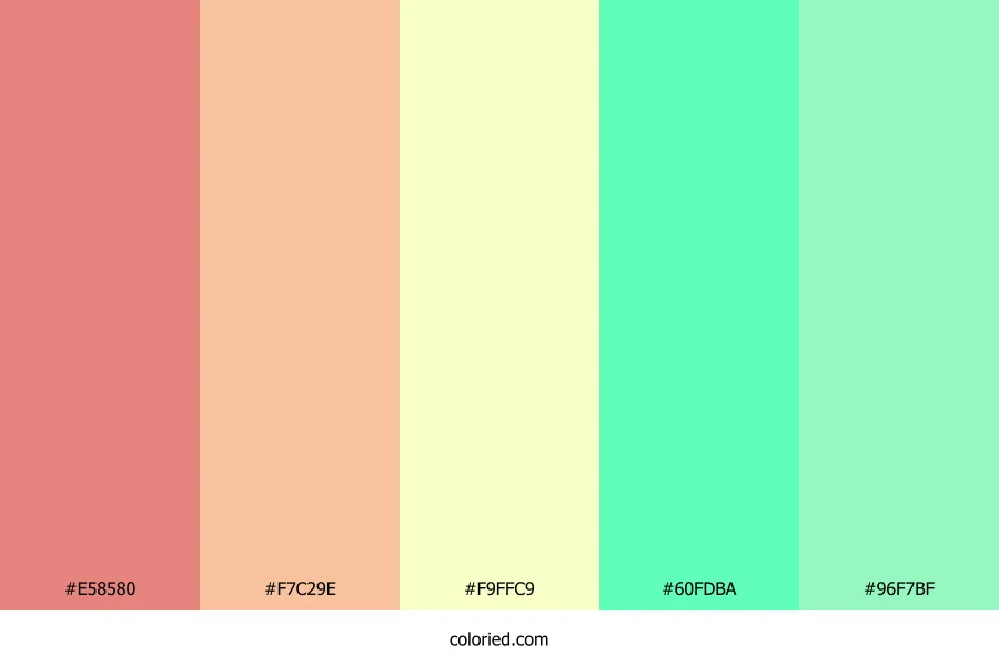 | #60FDBA | 96, 253, 186 | 154, 98%, 68% | 62%, 0%, 26%, 1% | oklch(0.894 0.163 162) | |
