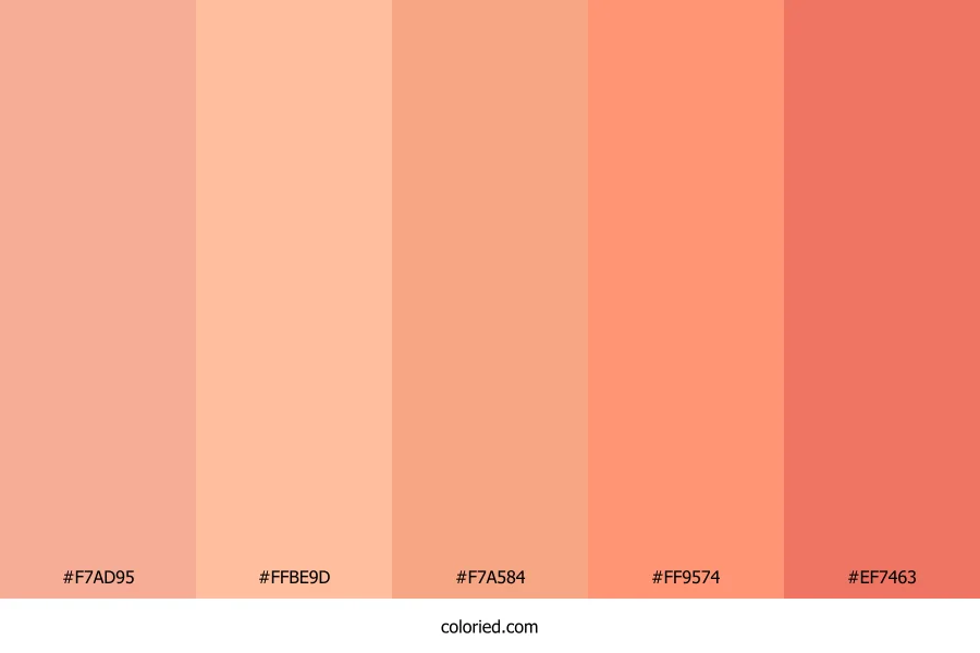 | #F7A584 | 247, 165, 132 | 17, 88%, 74% | 0%, 33%, 47%, 3% | oklch(0.795 0.108 43) | |