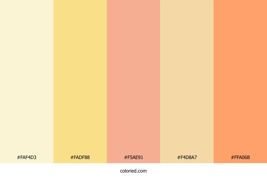| #FADF88 | 250, 223, 136 | 46, 92%, 76% | 0%, 11%, 46%, 2% | oklch(0.907 0.111 93) | |