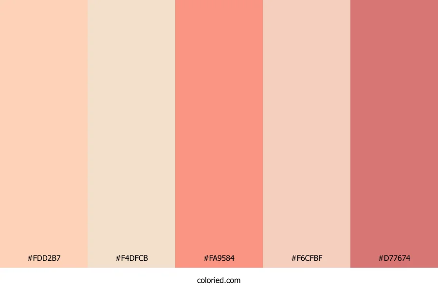 | #F6CFBF | 246, 207, 191 | 17, 75%, 86% | 0%, 16%, 22%, 4% | oklch(0.884 0.049 43) | |
