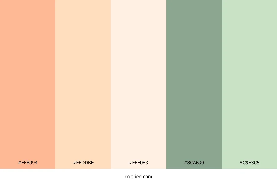 ![]() | #FFB994 | 255, 185, 148 | 21, 100%, 79% | 0%, 27%, 42%, 0% | oklch(0.842 0.095 49) |