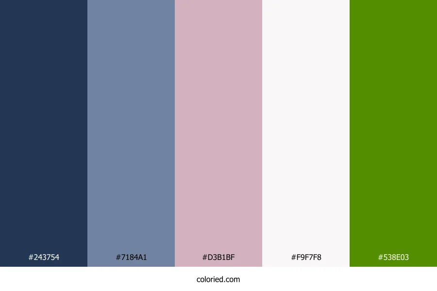 ![]() | #243754 | 36, 55, 84 | 216, 40%, 24% | 57%, 35%, 0%, 67% | oklch(0.335 0.057 259) |