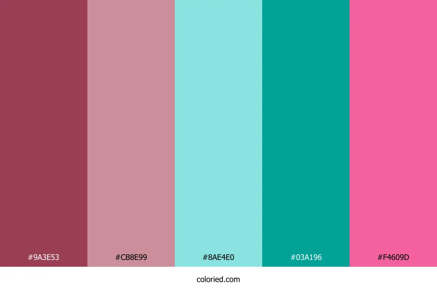 ![]() | #9A3E53 | 154, 62, 83 | 346, 43%, 42% | 0%, 60%, 46%, 40% | oklch(0.494 0.124 9) |