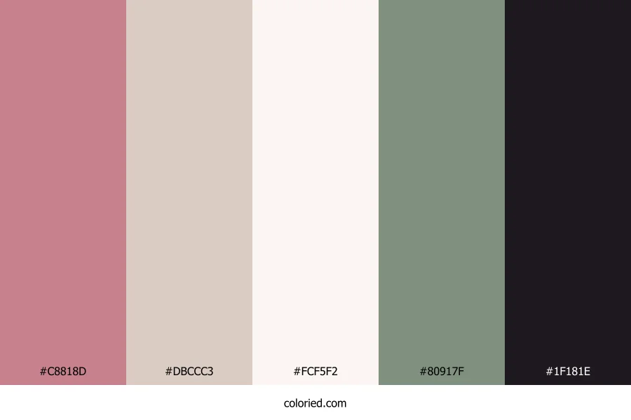 ![]() | #C8818D | 200, 129, 141 | 350, 39%, 65% | 0%, 36%, 29%, 22% | oklch(0.680 0.089 9) |