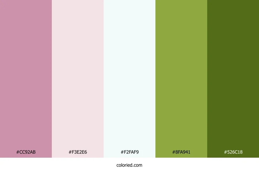 ![]() | #CC92AB | 204, 146, 171 | 334, 36%, 69% | 0%, 28%, 16%, 20% | oklch(0.724 0.077 352) |