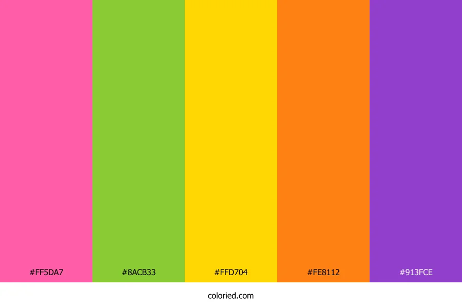 ![]() | #FF5DA7 | 255, 93, 167 | 333, 100%, 68% | 0%, 64%, 35%, 0% | oklch(0.710 0.207 355) |