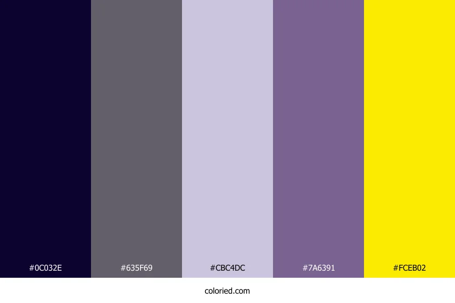 ![]() | #0C032E | 12, 3, 46 | 253, 88%, 10% | 74%, 93%, 0%, 82% | oklch(0.160 0.082 284) |