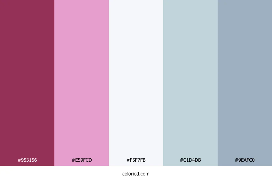 ![]() | #953156 | 149, 49, 86 | 338, 51%, 39% | 0%, 67%, 42%, 42% | oklch(0.470 0.138 1) |