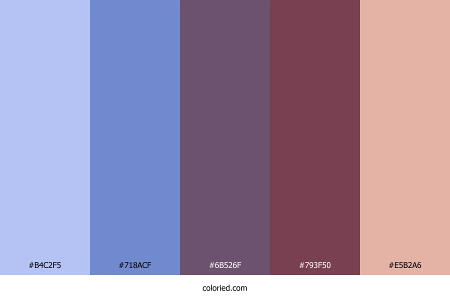 | #718ACF | 113, 138, 207 | 224, 49%, 63% | 45%, 33%, 0%, 19% | oklch(0.643 0.108 268) | |