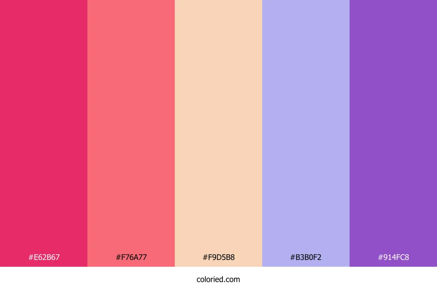 ![]() | #E62B67 | 230, 43, 103 | 341, 79%, 54% | 0%, 81%, 55%, 10% | oklch(0.609 0.220 9) |