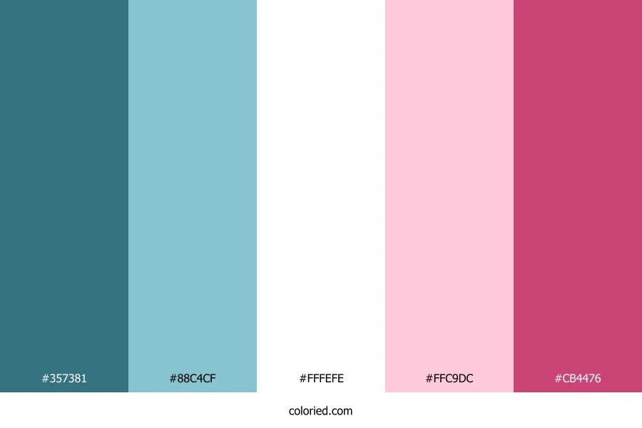 | #88C4CF | 136, 196, 207 | 189, 43%, 67% | 34%, 5%, 0%, 19% | oklch(0.783 0.063 210) | |