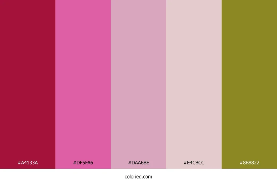 | #DF5FA6 | 223, 95, 166 | 327, 67%, 62% | 0%, 57%, 26%, 13% | oklch(0.667 0.177 349) | |