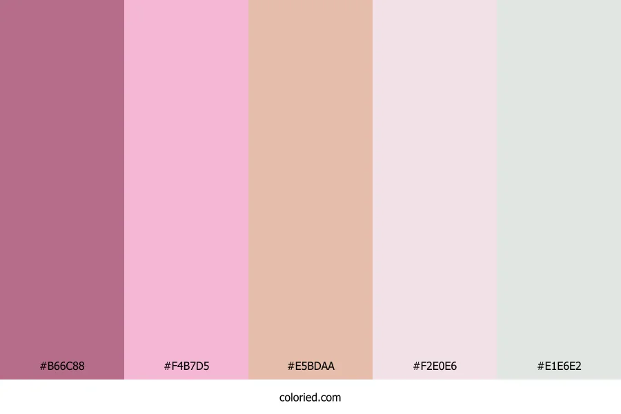 | #F2E0E6 | 242, 224, 230 | 340, 41%, 91% | 0%, 7%, 5%, 5% | oklch(0.923 0.021 355) | |