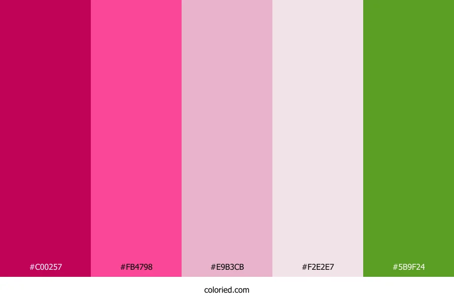 ![]() | #C00257 | 192, 2, 87 | 333, 98%, 38% | 0%, 99%, 55%, 25% | oklch(0.520 0.208 6) |