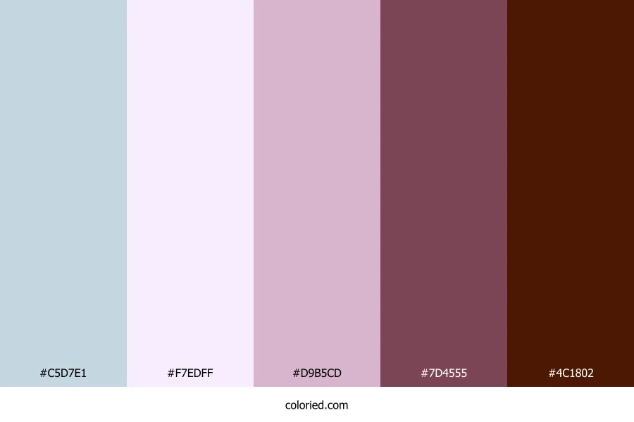 | #7D4555 | 125, 69, 85 | 343, 29%, 38% | 0%, 45%, 32%, 51% | oklch(0.463 0.079 2) | |