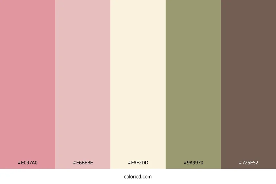 ![]() | #E097A0 | 224, 151, 160 | 353, 54%, 74% | 0%, 33%, 29%, 12% | oklch(0.751 0.088 11) |