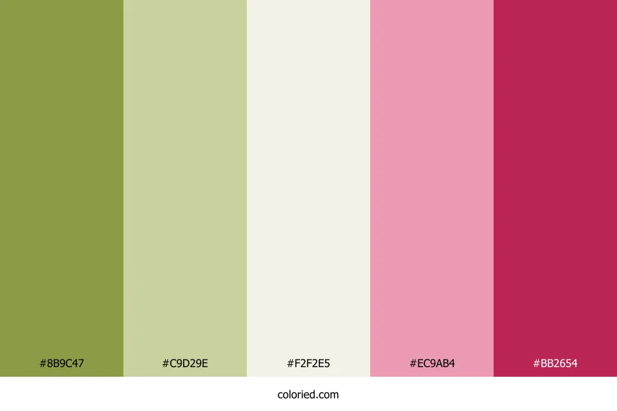 ![]() | #8B9C47 | 139, 156, 71 | 72, 37%, 45% | 11%, 0%, 54%, 39% | oklch(0.661 0.112 119) |