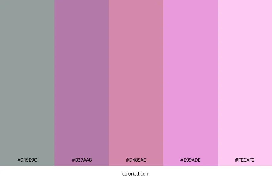 | #D488AC | 212, 136, 172 | 332, 47%, 68% | 0%, 36%, 19%, 17% | oklch(0.715 0.103 350) | |