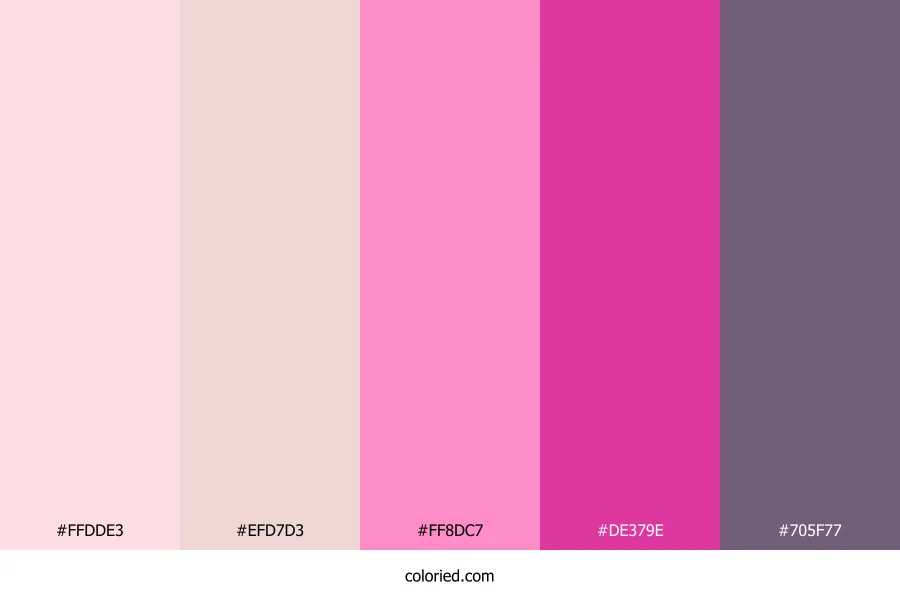 ![]() | #FFDDE3 | 255, 221, 227 | 349, 100%, 93% | 0%, 13%, 11%, 0% | oklch(0.927 0.038 6) |